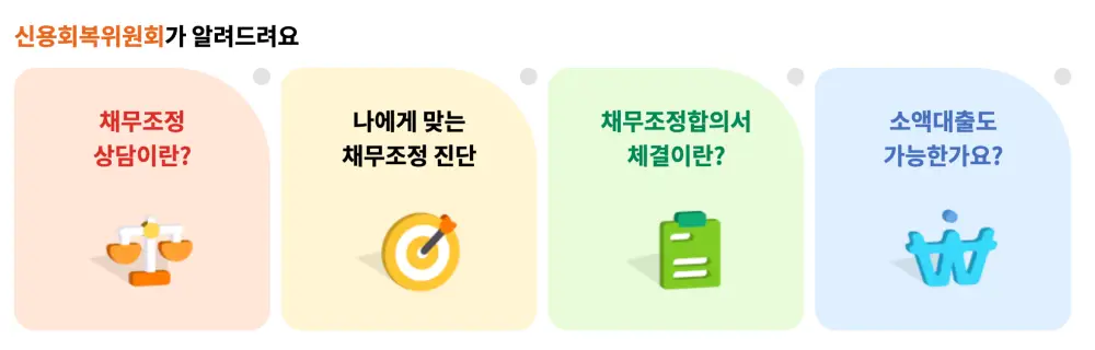 ✔ 법원 절차 없이 빠르게 진행하고 싶다 → 법원이 아닌 신용회복위원회를 통해 비교적 간단하게 신청 가능