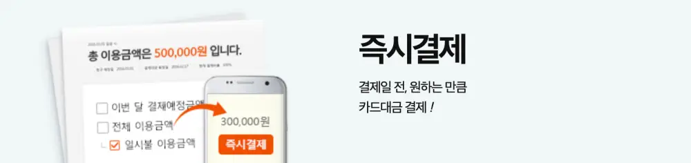 즉시결제는 결제일 전에 미리 카드 대금을 직접 납부하는 방식입니다.