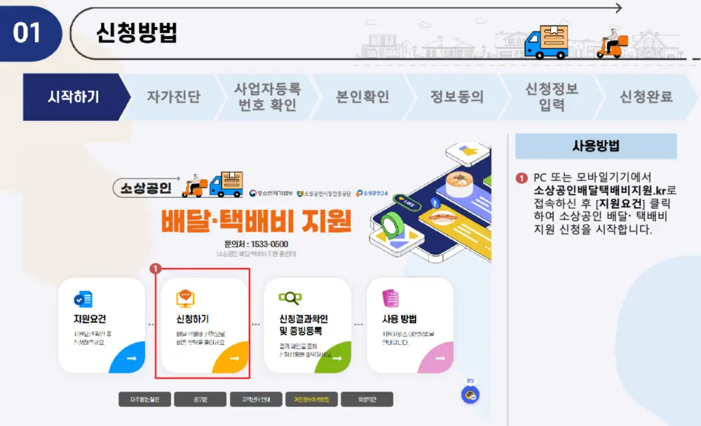 | 1 | 소상공인배달택배비지원.kr(https://delivery.sbiz24.kr/) 접속 |