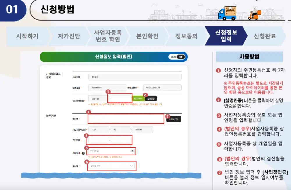 | 3 | 사업자등록번호·본인 계좌 입력 |